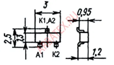 Диодная матрица 2Д706АС-9 кремниевая эпитаксиально-планарная, импульсная, состоящая из двух диодов.