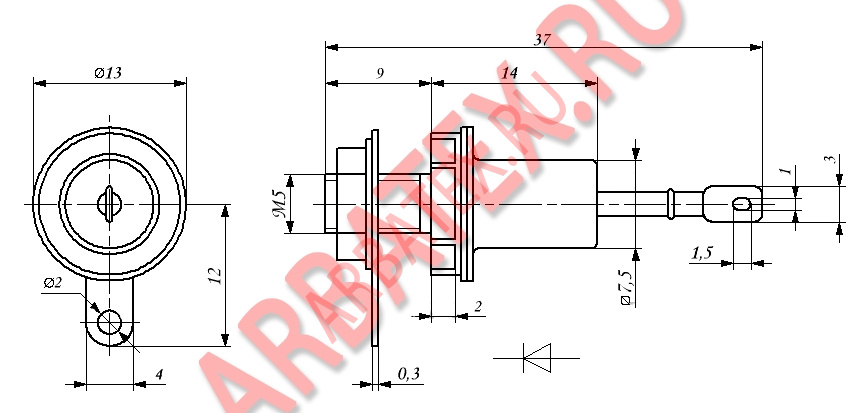 Тип диода и схема соединения электродов с выводами приводятся на корпусе.