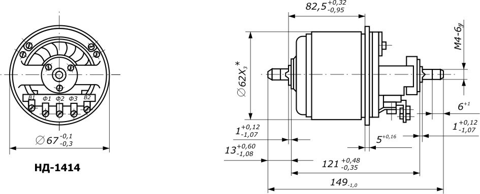Контактные сельсины НД-1414Б выполнены в соответствии с асинхронными электродвигателями с ротором небольшой мощности. Статор сельсина НД-1414Б не явнополюсной, обмотки— распределенные.