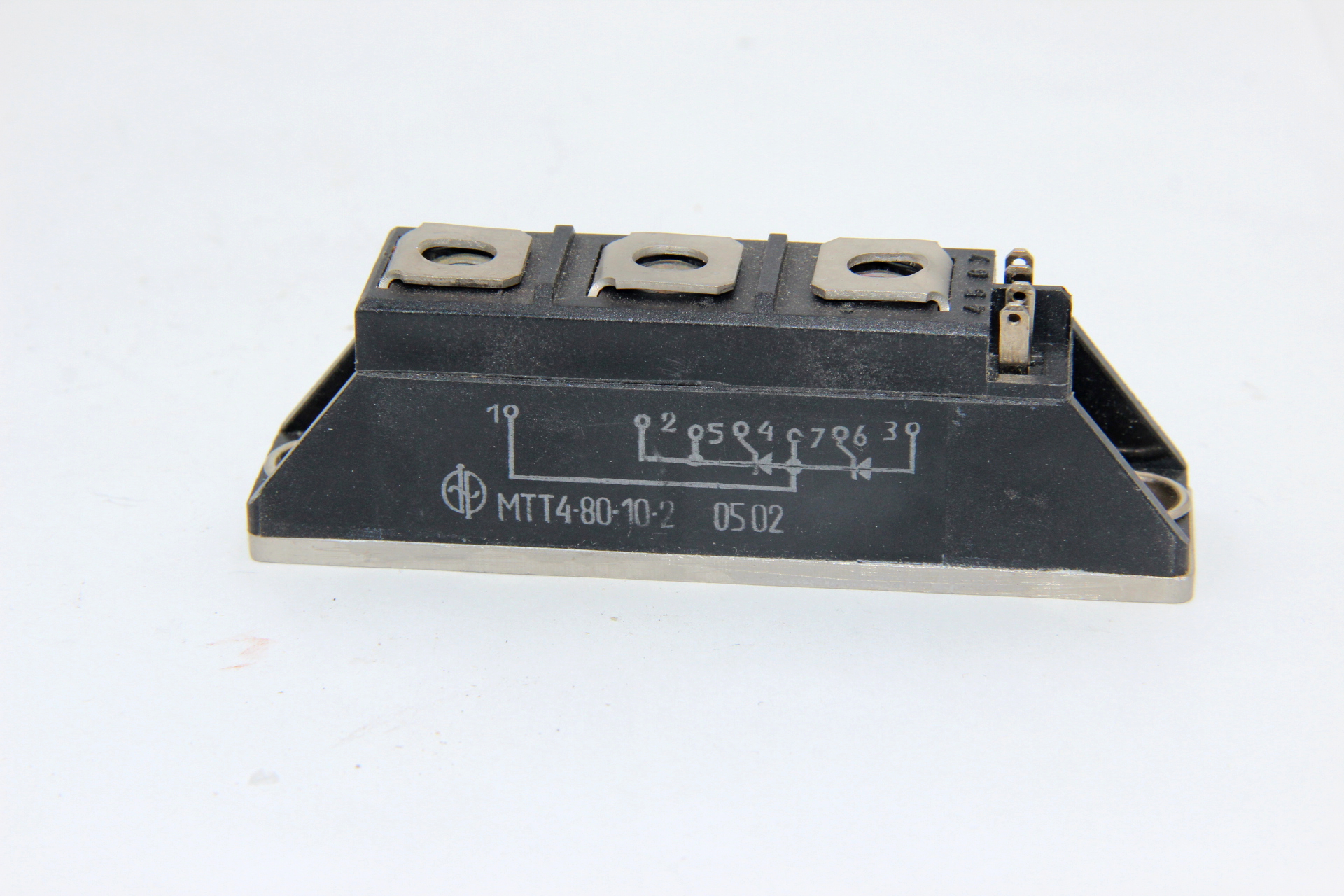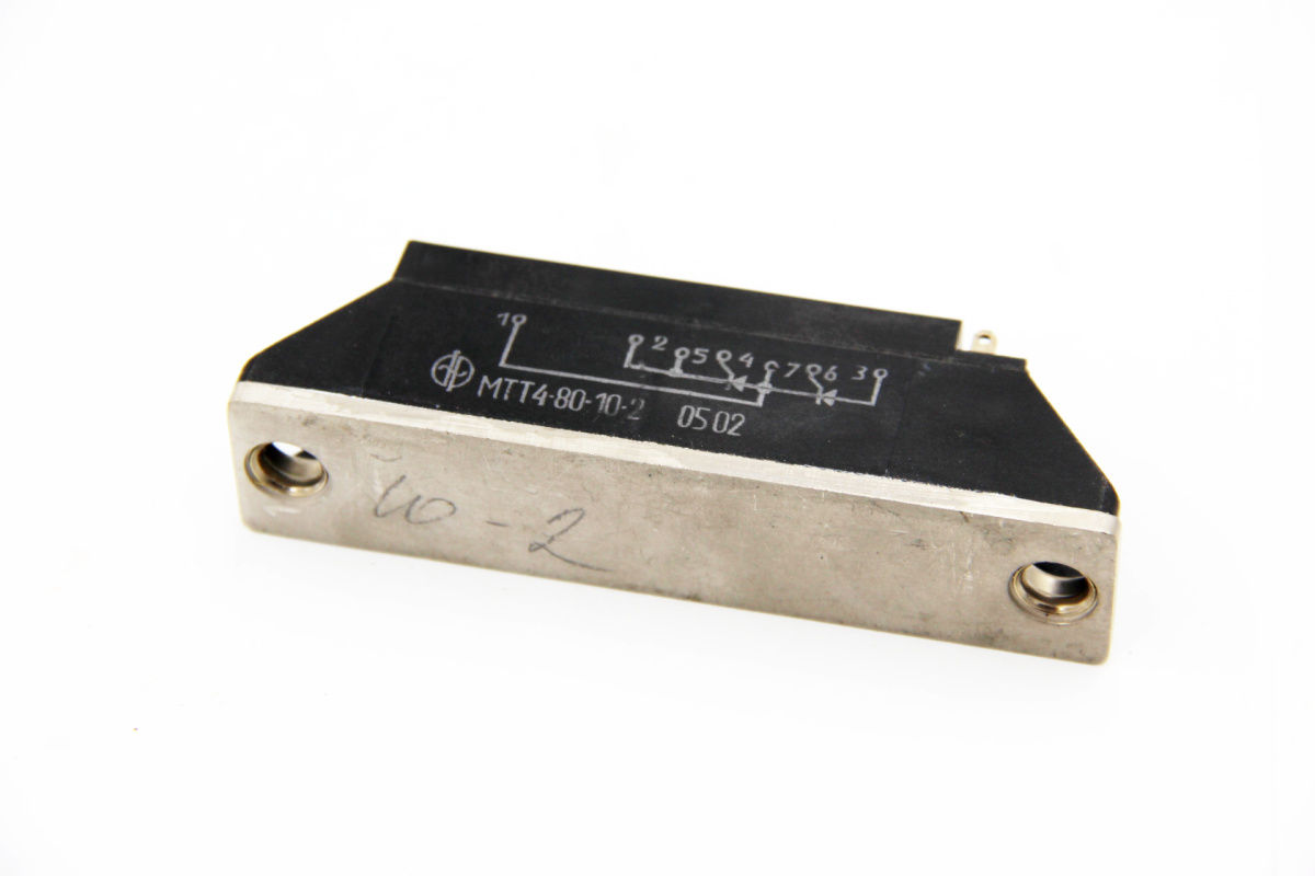 Модуль МТТ4-80-10-2 тиристорный силовой полупроводниковый низкочастотный состоящий из двух последовательно соединенных кремниевых диффузионных p-n-p-n тиристоров, включённых по полумостовой схеме