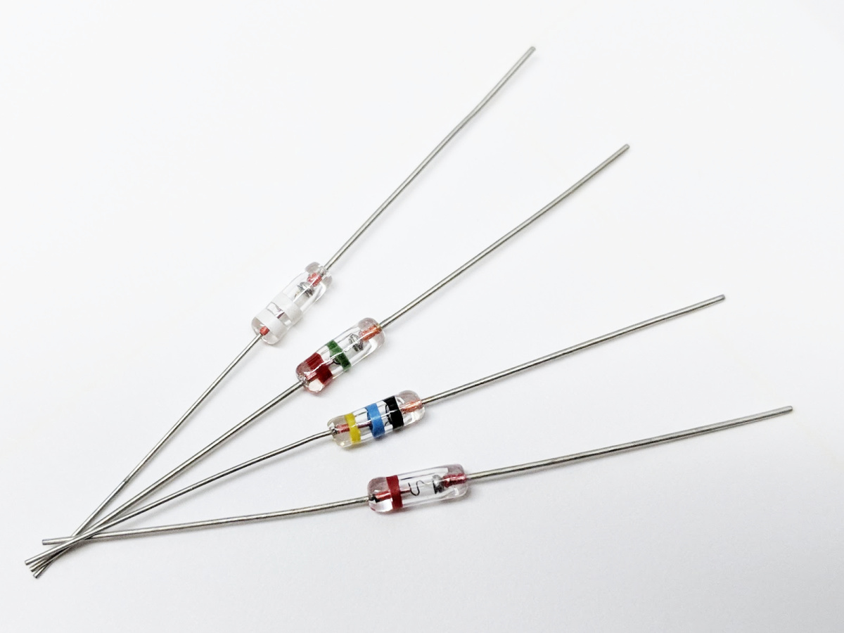 Для обозначения типа и полярности стабилитрона в стеклянном корпусах используется условная маркировка - голубая кольцевая полоса со стороны катодного вывода и разноцветные кольцевые полосы по сторонам анодного вывода: