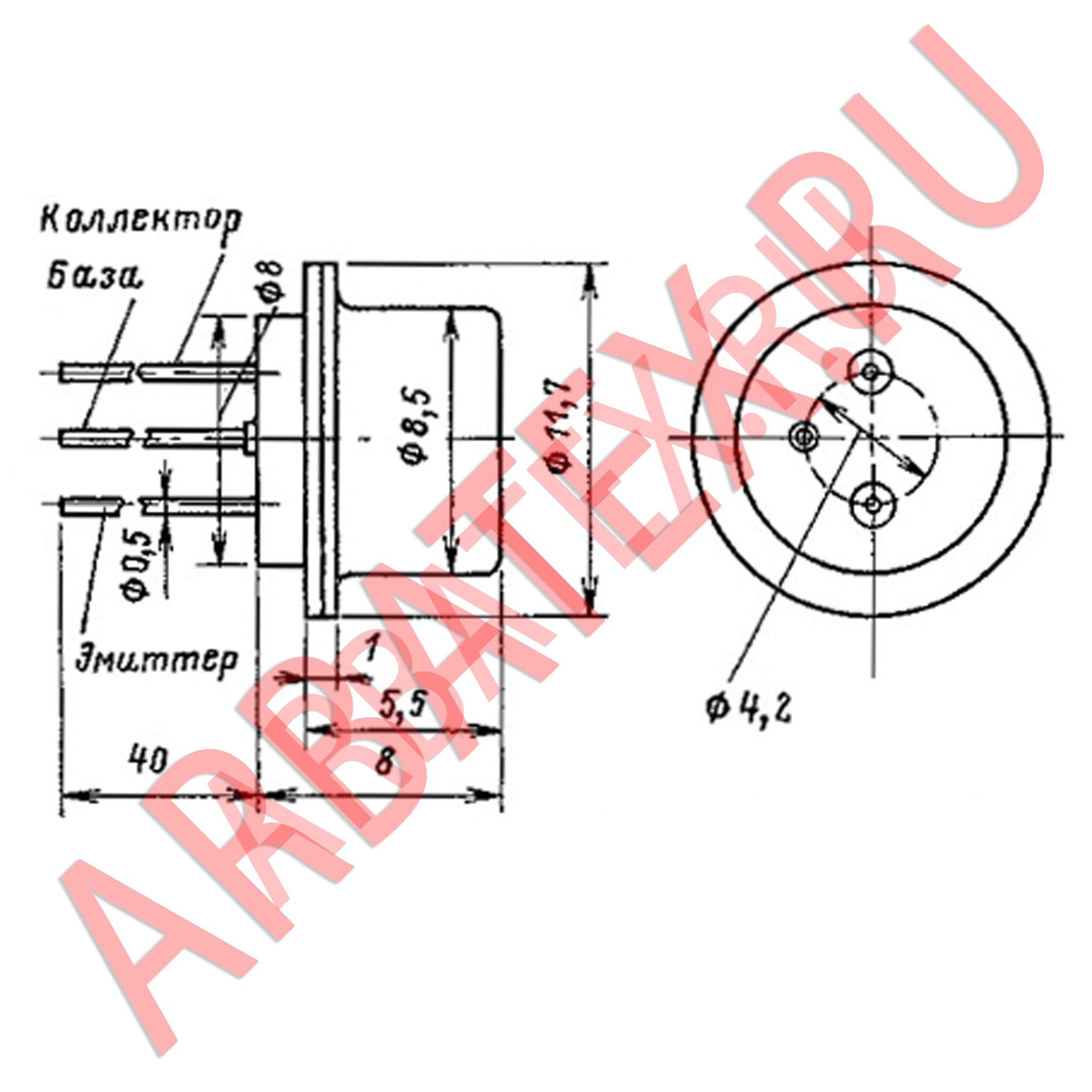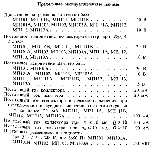 Масса транзистора не более 2 г для типов МП101, МП101А, МП101Б, МП102, МП103, МП103А